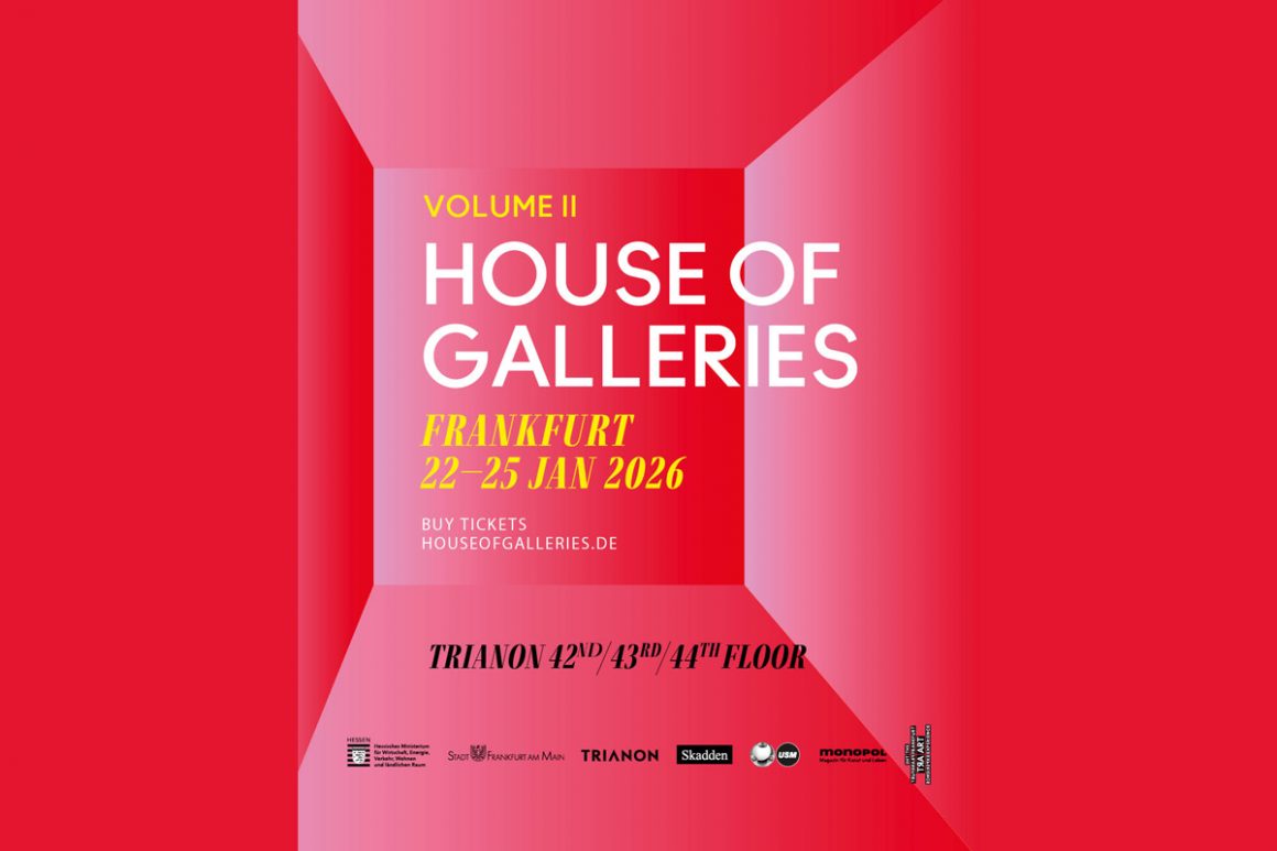 The House of Galleries is Frankfurt’s annual kick-off for contemporary art. From 22 to 25 January 2026, over 40 leading galleries from Frankfurt, Germany and Europe will once again gather on floors 42 to 44 of the TRIANON – a 186-metre-high high-rise building in Frankfurt’s banking district. The House of Galleries is a concept developed with Frankfurt galleries.