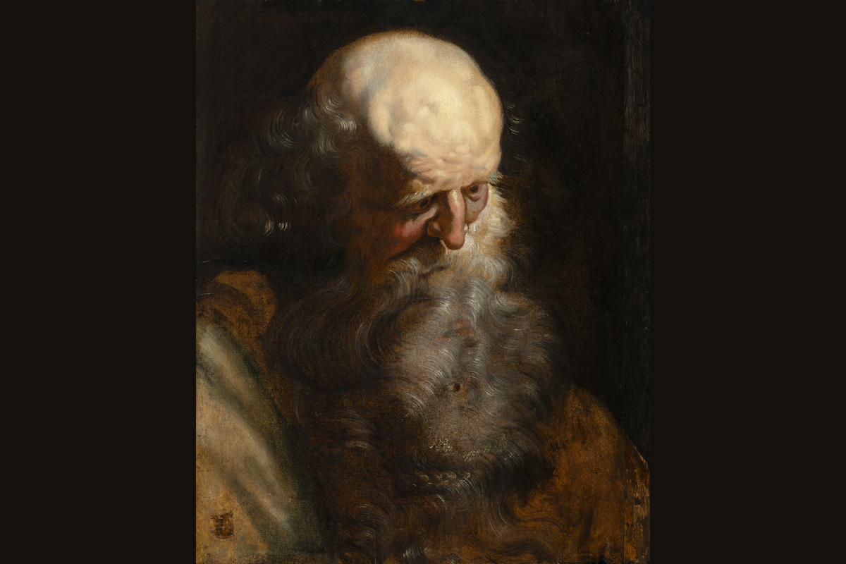 This powerfully painted head study shows a bald, bearded old man, his head slightly bowed and his gaze lowered. Rubens captures the moment with astonishing spontaneity and accuracy. Impasto accents on the nose and skull contrast with transparent brushwork elsewhere, making the face seem to glow out of the darkness.